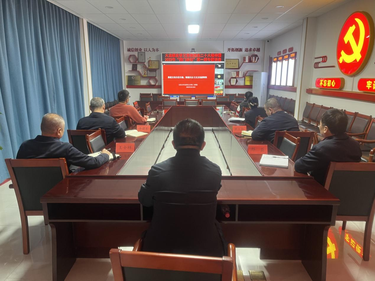 为深入学习领会党的二十大精神,2023年2月,大龙控股党委组织各党支部观看顺义区学习贯彻党的二十大精神系列培训暨2023年“国门讲坛”第一期专题讲座。