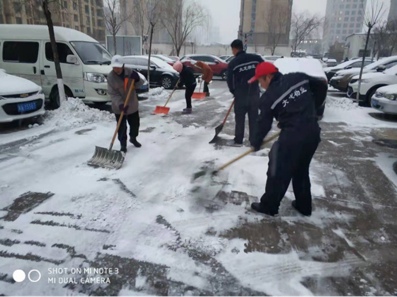 为有效应对当前雨雪冰冻、强降温天气,确保人民群众生命财产安全,确保道路畅通,从凌晨1时起,大龙控股所属大龙物业公司全体工作人员沿区域内主要干道开展铲雪除冰活动,集中力量,做好主要道路和其他降雪的重点区域、重点部位的铲雪除冰工作。一是做好值班值守和指挥调度,物业公司牢固树立“雪情就是命令”的意识,切实保障通讯联络畅通,指挥调度高效。二是精准实施扫雪铲冰作业,全力以赴保障政务中心、小区主要道路,以及背街小巷等区域扫雪铲冰工作。要求各项目部按照“先主要道路、再单元门、后停车场”的顺序进行作业,确保辖区道路通行条件。三是严格落实扫雪铲冰责任制,逐区域、逐道路落实人员和设备,严格执行扫雪铲冰作业标准和规范,做到无盲点、全覆盖。四是严格监督检查,加强对辖区扫雪铲冰工作的监督检查,发现问题立即督促整改,确保扫雪铲冰工作万无一失。截止目前,物业公司出动清扫人员1021人,融雪剂储备200吨,各类铲雪工具1100余套,确保辖区扫雪铲冰工作有序开展,保障道路安全出行环境。