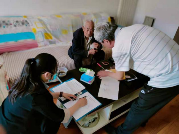 (党员上门为百姓办理手续)