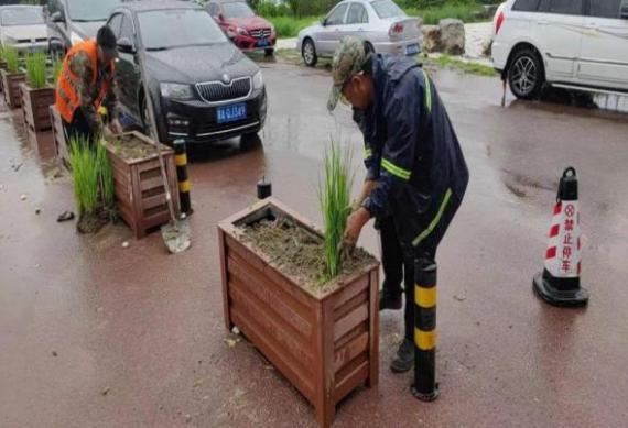 为了推动群众环境保护意识和审美文化素养,改善社区环境及临街环境,天房绿茵组建了一支“荧光”志愿服务队”,绿茵“荧光”志愿服务队调动社会力量积极推进“社会环境新风貌 街容整洁”社会建设。向群众居民普及环保科学知识、宣传环保理念。有效提升居民群众参与环保的意识,引导群众关注、支持和理解环保关注,提升环境质量,促进人与自然和谐发展。志愿服务队队员们利用自身优势和专业特长,走访周边、调研制定实施方案,启动货车1辆、安置花箱28个、回填4方土并种植14平方的绿植。采用道路中央安置花箱进行隔离的方式,不仅解决机动车乱停放占用盲道的问题,还提升了周边环境面貌。