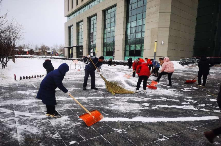公司机关组织党员干部职工对公司院内及“门前三包”范围内人行横道等重点部位积雪进行清理。