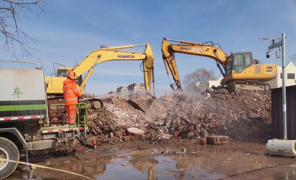 大龙控股所属天房公司、机械公司正式吹响新国展一期西北地块腾退项目复工复产“冲锋号”。所有管理人员全部按时到岗就位,现已有200余人投入到复工复产中。施工人员紧锣密鼓进行裸土覆盖,加足马力拆除临时安全围挡设施,奋力攻坚恢复供水供电,做好施工物资的统筹协调,出动挖掘机14台,重型自卸车40余台。截止目前,项目已完成进度的80%。