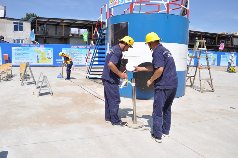 为进一步提高物业公司有限空间作业的认知程度和风险防范意识,强化企业有限空间作业人员的技能水平,有效防范有限空间作业中毒、窒息事故的发生,切实保护从业人员的生命安全, 2018年8月16日大龙物业公司参加了区住建委系统有限空间作业大比武初赛,并以初赛第一名的好成绩入围决赛。